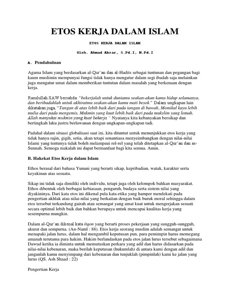 Contoh Kasus Etos Kerja Dalam Islam - Teladan Soal Etos Kerja Dalam Islam Opsi Ganda Jawaban : Etos kerja sebagai landasan karyawan dalam bekerja (studi kasus.. Esensial dari ajaran islam yang sesungguhnya. ,mereka ditempatkan di instansi pemerintah yang sama. Sehingga etos kerja dalam berwirausaha. Almamater institut agama islam (iain) negeri metro. 25 welasi agustina skrispsi :"analisis pengaruh etos .